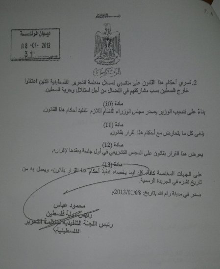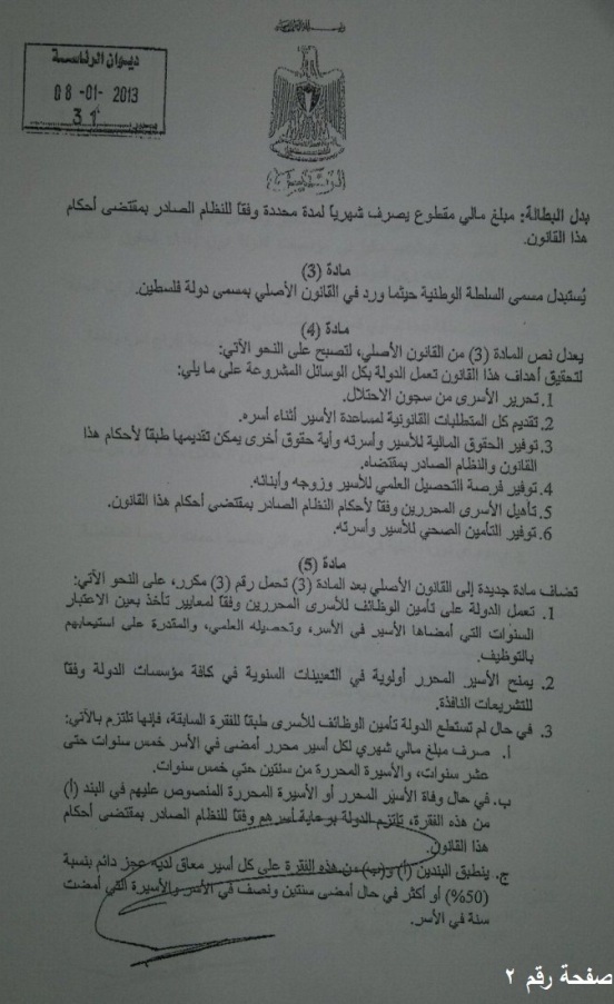 المصادق عليه من قبل السيد الرئيس " محمود عباس " أبو مازن "