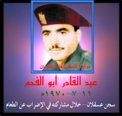 وفي الحادي عشر من تموز / يوليو من عام 1970 وقبل ثلاثة وأربعين عاماً انضم لقافلة شهداء الحركة الأسيرة الشهيد الأسير / عبد القادر جبر أحمد أبو الفحم ، الذي يعتبر أول شهداء الإضرابات عن الطعام أو ما تسمى " معركة الأمعاء الخاوية " وذلك خلال مشاركته في اضراب سجن عسقلان الشهير أوائل تموز / يوليو عام 1970 .