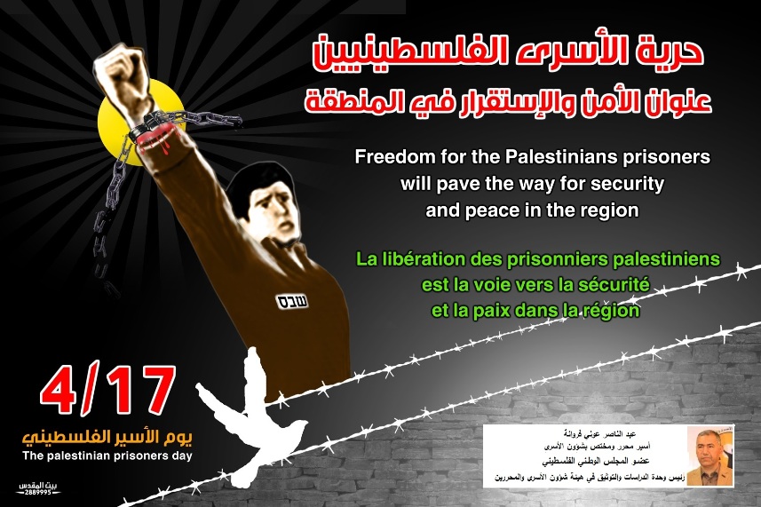 غزة-16-٤-٢٠٢٠ - قال عبد الناصر فروانة، المختص في شؤون الأسرى والمحررين، ان المجلس الوطني الفلسطيني أقر عام ١٩٧٤، باعتباره السلطة العليا لمنظمة التحرير الفلسطينية، يوم 17 نيسان/ابريل، يوما لنصرة الأسرى والمعتقلين في سجون الاحتلال الاسرائيلي، ووفاء لتضحياتهم.