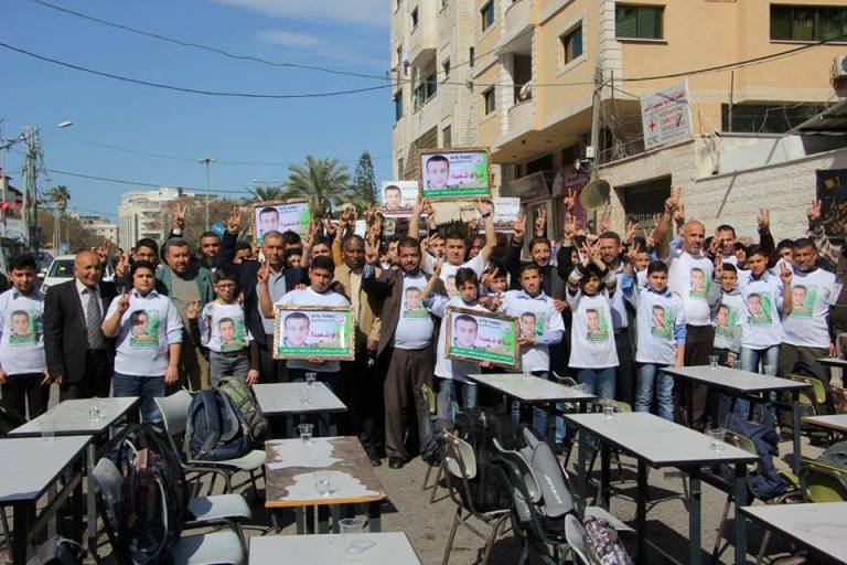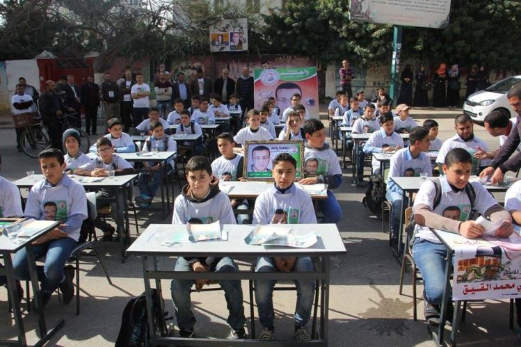 وقفة الأمس كانت عبارة عن نقل إحدى الفصول الدراسية بكامل عناصره الأساسية المتمثلة في المعلمين وعشرات من تلاميذ مرحلة التعليم الأساسي، بمقاعدهم وحقائبهم وسّبورتهم، من مدرستهم إلى ساحة مقر الصليب الأحمر بغزة. وبزي غير تقليدي حيث ارتدى الطلاب بدلا من الزي الرسمي بلايز(تشيرتات) بيضاء اللون تحمل صور المعتقل "محمد القيق". وبعد انتهاء الحصة الدراسية الخارجية والقاء الكلمات والدروس، أمسك كل طالب منهم قلمه وخط ما يجول بخاطره من مشاعر تجاه "القيق"، وعبّر عن مطالبه من المجتمع الدولي ومنظماته الحقوقية تجاهه ببضع كلمات بسيطة في رسالة حملت أيضا صورة "القيق"، وسلم كل واحد منهم رسالته مباشرة الى مدير البعثة الدولية للصليب الأحمر بغزة "ممادو سو". في مشهد كان أكثر من رائع.