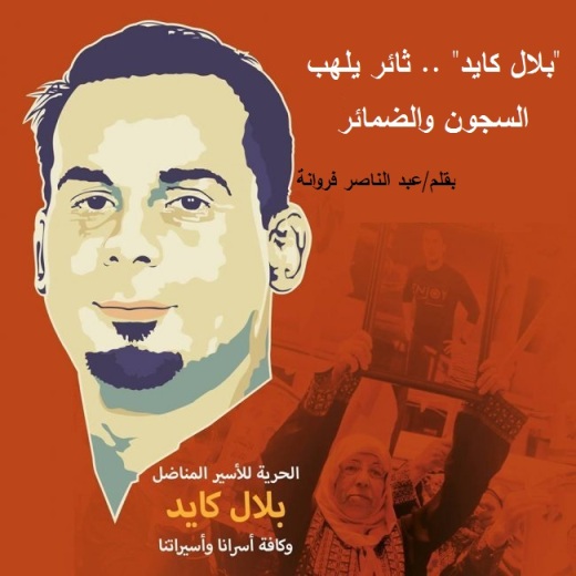 "بلال كايد".. نستسمحك عذراً إن كنا قد قصَّرنا في مساندتك، أو ان كنا قد تخلفنا عن الاستجابة للمشاركة في فعاليات وأنشطة نظمت هنا أوهناك دعما واسنادا لإضرابك، أو ان كنا قد صمتنا في لحظات ما كان يجب أن نصمت أمام جوعك لأجل الحياة الكريمة ولأجل الحرية المشروعة. لكن تأكد تماما أننا بجانبك في معركتك وسنكون سندا لك ولكل من آمن بخيار المقاومة وسيلة للذود عن الكرامة وانتزاع الحقوق المسلوبة والحرية المشروعة. وسلاح الأمعاء الخاوية هو أرقى أشكال المقاومة والمواجهة خلف القضبان.
