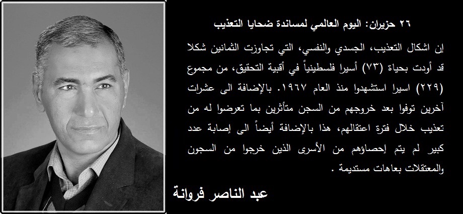 يذكر أن الجمعية العمومية للأمم المتحدة كانت قد أقرت في الثاني عشر من شهر كانون أول/ديسمبر من عام 1997، يوم السادس والعشرين من حزيران/ يونيو من كل عام، يوماً لمناهضة التعذيب ومساندة ضحاياه، باعتباره يوما لتفعيل اتفاقية الأمم المتحدة لمناهضة التعذيب التي بدأت بالتنفيذ الفعلي بتاريخ 26 حزيران عام 1987م. فيما لا يزال التعذيب في سجون الاحتلال الإسرائيلي مستمرا، وما يزال الشعب الفلسطيني ينتظر من سينتصر للمُعَذَبين من أبنائه داخل "أروقة الموت" الإسرائيلي. ومازال "اليوم العالمي لمساندة ضحايا التعذيب" يثير في نفوسنا ونفوس الأسرى المحررين الألم. ذاك الألم الذي لا ينتهي بفعل الزمن.