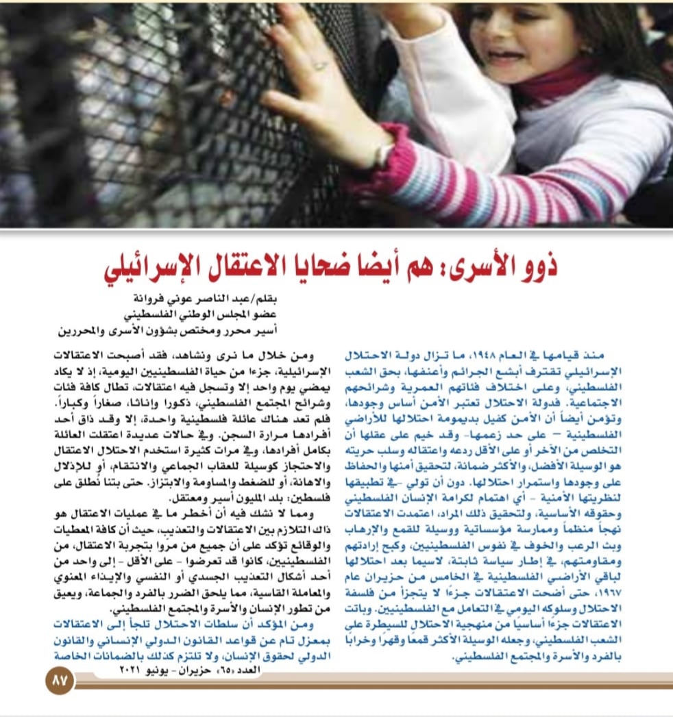· نشر في العدد الجديد لمجلة المجلس الوطني الفلسطيني، والذي صدر يوم الثلاثاء (29-6-2021)