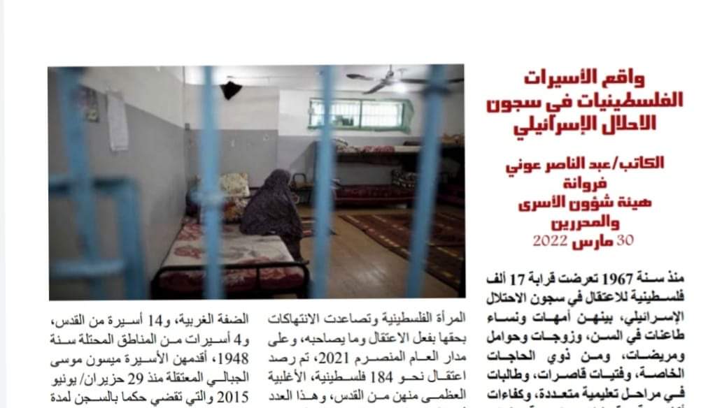 واقع الأسيرات الفلسطينيات في سجون الإحلال الإسرائيلي