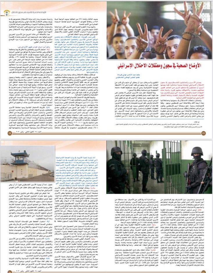 تنويه: نشر في مجلة المجلس الوطني الفلسطيني العدد الأخير- قرابة (2000) كلمة تستعرض الأوضاع الصحية وأسباب ظهور الأمراض بين صفوف الأسرى والمعتقلين. فاقتضى التنويه