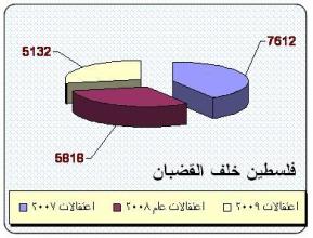 حيث ان العام 2007 شهد ( 7612 حالة اعتقال ) بمعدل ( 21 ) حالة يومياً ، والعام 2008 شهد ( 5818 حالة اعتقال ) بمعدل ( 16 ) حالة يومياً ، فيما العام المنصرم 2009 سُجل خلاله فقط ( 5132 حالة اعتقال ) بمعدل ( 14 ) حالة اعتقال يومياً .